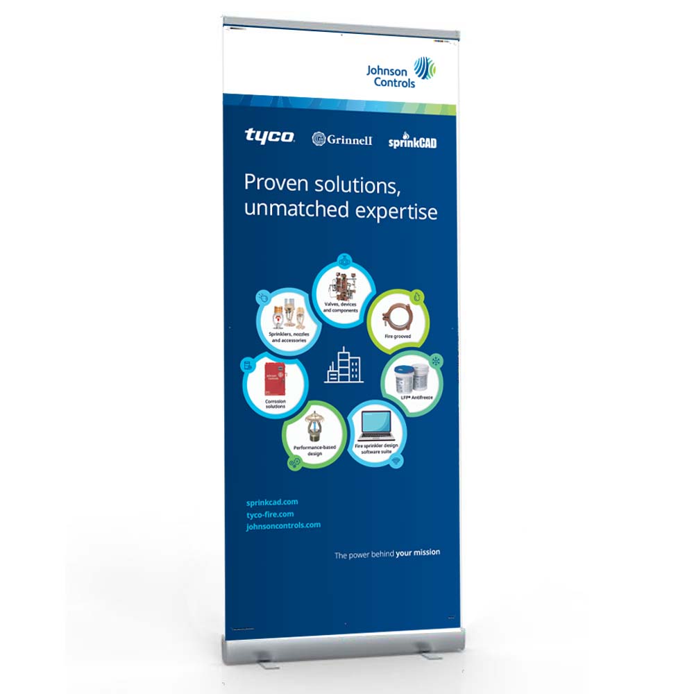 • Banner comes installed on the base & is ready for immediate use